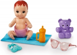 Podložka, fľaša, macko, okuliare a „plienka“ podporujú fantáziu a umožnia deťom hrať sa na starostlivosť o bábätko do posledného detailu.