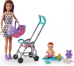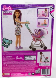 Objavte kúzlo hier o starostlivosti so sadou BARBIE Skipper Opatrovateľka. Deti môžu voziť bábätko v kočíku, ktorý sa pri jazde kolíše, a vďaka odnímateľnému nosítku ho ľahko prenášať. Štýlová bábika má letné šaty a topánky, bábätko a farebné doplnky pozývajú k nekonečným príbehom.