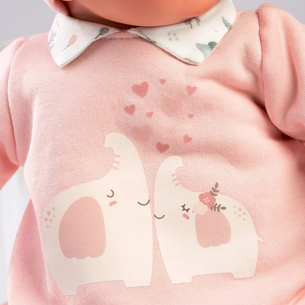 Roztomilé bábätko Joelle od značky Llorens poteší kvalitným spracovaním a realistickými detailmi. Má mäkké bruško na príjemné mojkanie, vinylové ručičky, nožičky a hlavičku s jemným tieňovaním, riasami a žiarivými očami. Oblečenie je šité z organickej bavlny, vlny a recyklovaných materiálov. Skvelý darček pre deti s edukačnou aj hracou funkciou.