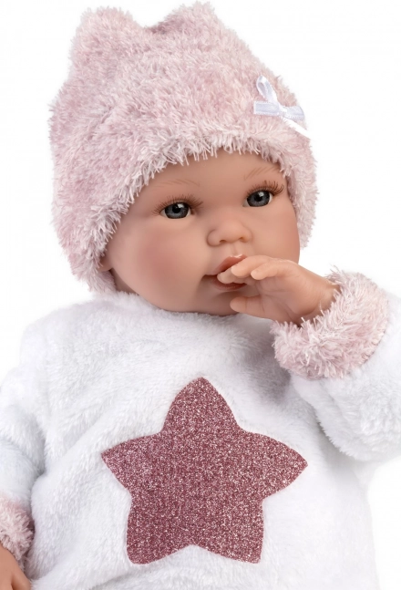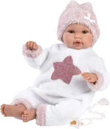 Vďaka kĺbovo uchyteným rúčkam a nožičkám je bábika polohovacia a zvládne aj stabilné sedenie. Súčasťou je doplnkový cumlík a batérie na okamžité hranie. K bábike ľahko dokúpite originálne oblečky LLORÉNS pre veľkosť 35–36 cm.