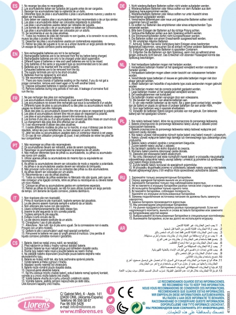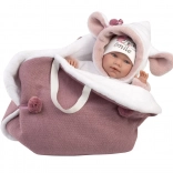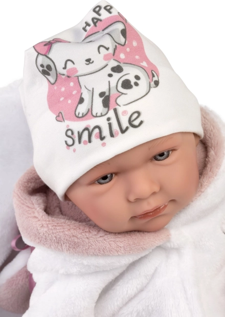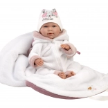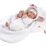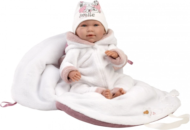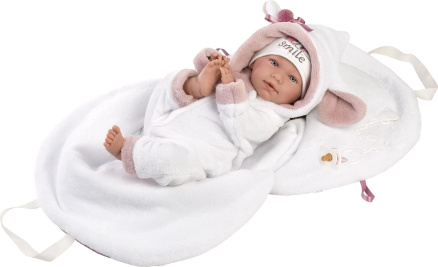 Hovoriace bábätko s mäkkým látkovým telom, ktoré po stlačení na hrudník začne hovoriť „mama“, „papa“ a vydávať realistický zvuk plačúceho bábätka. Ruky a nohy sú k telu prichytené kĺbom. Bábätko je polohovateľné a môže aj sedieť. Cumlík v balení slúži iba ako doplnok. Veľkosť 42 cm. Ručne vyrobené v Španielsku, balené v darčekovej krabici. Odporúčaný vek od 3 rokov. K bábätku je možné dokúpiť ďalšie originálne oblečenie z ponuky Llorens pre bábätká NEW BORN vo veľkosti 40–42 cm alebo 43–45 cm. Súčasťou balenia sú 3 × gombíkové batérie LR44 s návodom na ich výmenu. Batérie sú spotrebný tovar, a preto ich vybitie nie je dôvodom na reklamáciu bábiky.