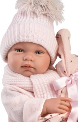 Bábiku možno kúpať s opatrnosťou na riasy. Súčasťou je cumlík a hebké ružové oblečenie s dekou.
