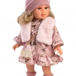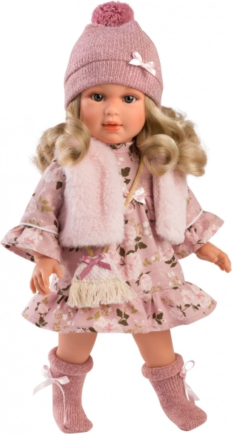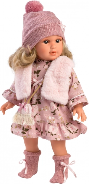 Súčasťou setu je tiež štýlový klobúk s bambulou, šál a malá kabelka, ktoré dotvárajú celkový outfit.