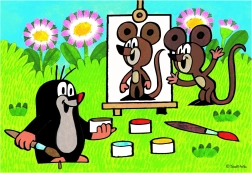 Deti si môžu užiť motív Krtka maľujúceho myšku, ktorý inšpiruje k vlastnej kreativite a umeleckému vyjadreniu.
