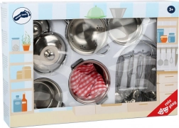 Malá sada kovového riadu od Small Foot je ideálnym doplnkom do detskej kuchynky. Táto bohatá sada obsahuje jednotlivé prvky, ako sú panvice, hrnce a ďalší riad, ktoré umožnia deťom hrať sa na kuchára.