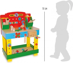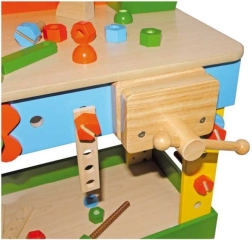 Pracovný stôl má robustnú konštrukciu a dostatok priestoru na skrutkovanie, stavaníe a fantazijnú hru. Súčasťou balenia sú diely a doplnky podľa obrázkov, aby mohli deti okamžite začať tvoriť.