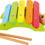 Tento farebný drevený xylofón v tvare slimáka prináša deťom zábavné prvé krôčiky do sveta hudby. Päť jasne zafarbených kovových lamiel vydáva čisté tóny a podporuje vnímanie rytmu aj koordináciu oko–ruka. Paličky sú šikovne ukryté v „tykadlách“ a sú vždy po ruke.