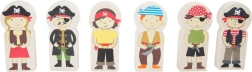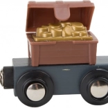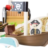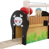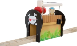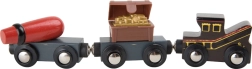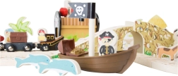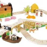 Vstúpte do sveta pirátov a fantázie. Šesť pirátov vládne vlastnej vláčkodráhe na ostrove, kde drevené koľaje vedú cez most so zvončekom a vlak preváža delo aj truhlicu plnú zlata. Žeriavová stanica s magnetickým hákom umožní jednoduché nakladanie nákladu – stačí otočiť mechanizmom a spustiť magnet nadol.