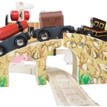 Set je vyrobený z kvalitných a zodpovedne získaných prírodných materiálov a doplnený odolnými plastovými prvkami pre dlhú životnosť. Všetky súčasti sú navrhnuté s dôrazom na bezpečnosť a rozvoj detských zručností – podporujú predstavivosť, obratnosť a koordináciu. Súčasťou balenia sú všetky prvky podľa obrázka a sada je kompatibilná s väčšinou klasických drevených vláčkodráh.