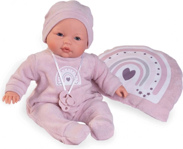 Bábika nielen žmurká a plače, ale tiež vydáva reálne zvuky, ktoré možno utišiť pomocou magnetického cumlíka. Oblečená je v krásnom prírodnom oblečení z ekologicky pestovanej bavlny.