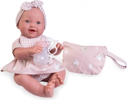 Objavte kúzlo realistickej hry s bábikou MIA od ANTONIO JUAN. Táto mrkajúca a čúrajúca bábika s celovinylovým telom má jemné detaily novorodeniatka vrátane drobných záhybov a pohlavia. Vyrobená z mäkčeného vinylu, príjemného na dotyk, s doplnkami pre opatrovateľskú hru – plniteľná fľaštička a dve jednorazové plienky. Veľkosť 42 cm, ideálna pre malých opatrovateľov od 3 rokov.