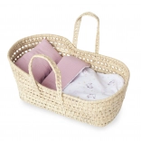 Tento elegantný Mojžišov košík pre bábiky poteší každú malú mamičku. Vďaka ľahkej, ale pevnej konštrukcii sa ľahko prenáša a zároveň ponúka dostatok priestoru na pohodlné uloženie bábiky. Sada obliečania s vankúšikom a matracom je nielen krásnym doplnkom, ale aj praktickou súčasťou každodennej hry.