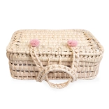 Tento ručne tkaný kufrík zo sušených palmových listov je krásny, ľahký a zároveň odolný. Vďaka textilným priehradkám udrží všetko prehľadne na svojom mieste a deti si ho ľahko vezmú všade so sebou. Prírodný materiál a starostlivé spracovanie z neho robia udržateľnú a štýlovú voľbu pre detské hry.