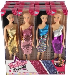 Táto elegantná bábika prináša deťom nekonečnú porciu fantázie. Je oblečená do trblietavých šiat s obojstrannými flitrami, ktoré po prejdení rukou menia farbu – efekt, ktorý deti milujú. Vďaka pevnému plastovému telu a kvalitnému spracovaniu je skvelá na každodenné hranie aj ako darček.