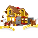 - Obsah balenia: domček s otváracími dverami, výťah, 4 kone, 6 plotov výbehu, 2 kontajnery na vodu a krmivo, prekážková dráha, žeriav na seno, nájazdové rampy a sada 34 nálepiek.