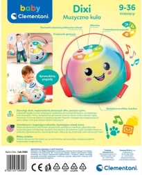 Dixi hudobná guľa je sympatická interaktívna kamarátka na prvé objavovanie sveta zvukov, slov a rytmu. Deti si môžu vyberať zo 4 klávesov s rôznymi témami – počasie, farby, zvieratá a ich zvuky – ktoré podporujú rozvoj reči aj vnímania. Veselo znejúce pesničky a rôzne žánre hudby prinášajú množstvo radosti a motivujú k opakovanému hraniu.