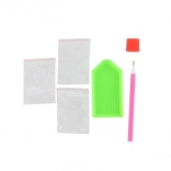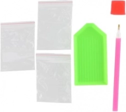 V balení nájdete všetko, čo potrebujete: plátno s predtlačeným obrázkom a lepiacou vrstvou, aplikačné pero, vosk, misku a sadu farebných kamienkov. Fóliu z plátna odkrývajte postupne a kamienky prenášajte pomocou pera s voskom presne na označené miesta. Hotový obraz možno jednoducho zarámovať a vystaviť (rám nie je súčasťou balenia).