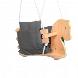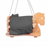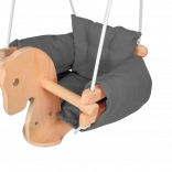 Komfortná detská hojdačka v dizajne koníka s dreveným rámom a textilným materiálom, ideálna pre pohodlný odpočinok najmenších detí.