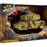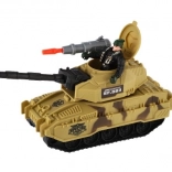 Objavte zábavný set pre milovníkov akčných scén – plastový tank s vojakom a príslušenstvom. Vďaka voľnobehu sa tank ľahko rozbehne po rovnej ploche, zatiaľ čo otočná veža a dlhé delo podporia realistické herné scenáre. Set je skvelý na rozvoj fantázie, jemnej motoriky a príbehového myslenia.
