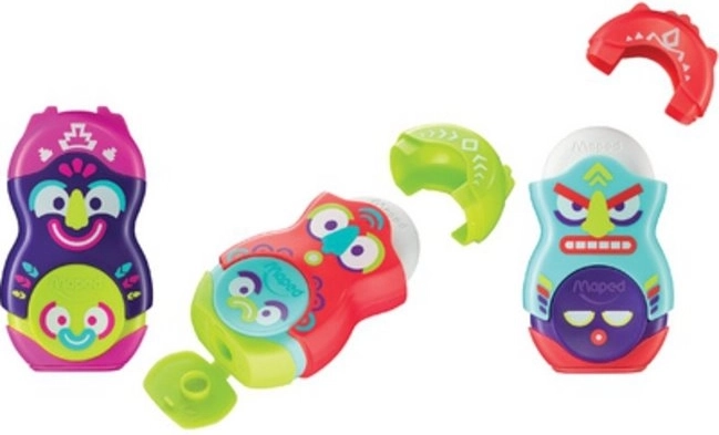 Oživte peračník detí aj tvorivých dospelých. Strúhadlo MAPED Loopy Totem kombinuje presné strúhanie ceruziek a pasteliek s praktickou gumou bez PVC. Integrovaná nádobka na hobliny udržiava poriadok na lavici aj v taške.