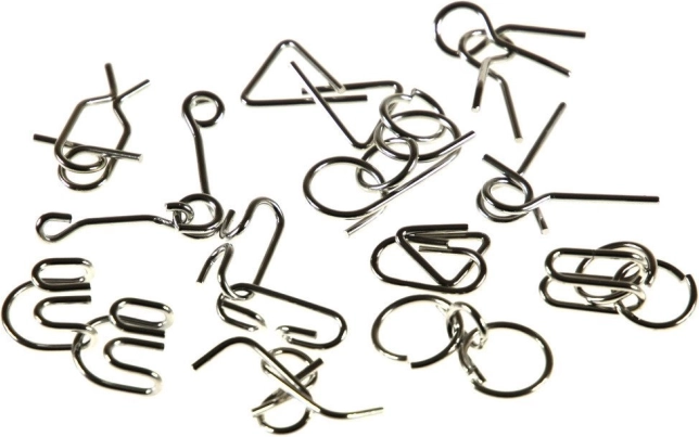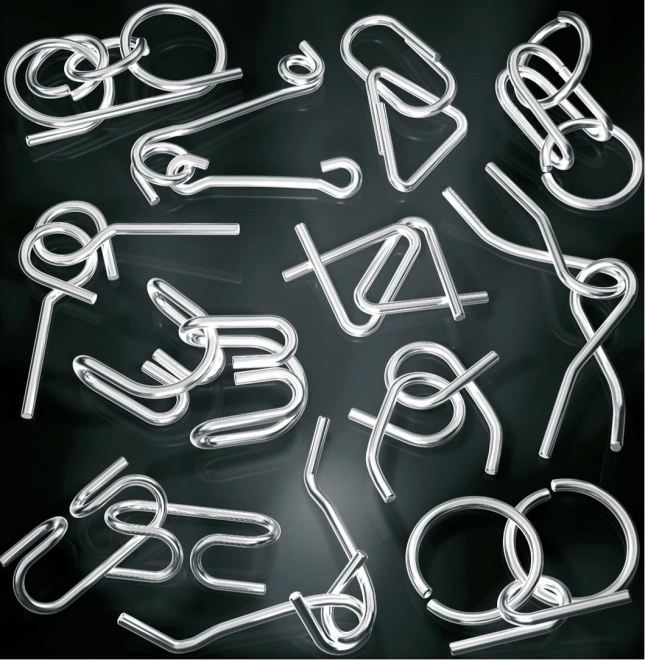 - 12 kovových hlavolamov v kompaktnej krabičke