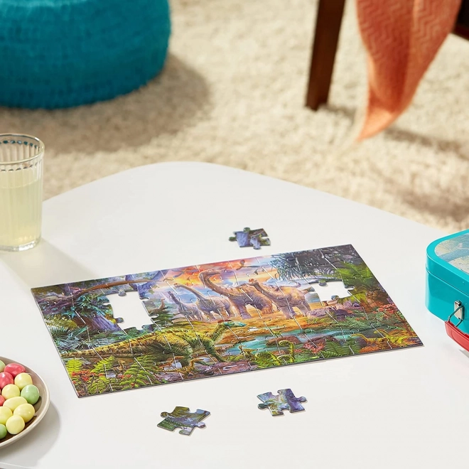 Objavte čarovný svet dinosaurov prostredníctvom týchto farebných puzzle. Každý z motívov vás zavedie do doby, keď Zemi vládli dinosaury, a to vďaka jedinečnému dizajnu a detailnej kresbe. Puzzle sú uzavreté v odolnom plechovom kufríku, ktorý uľahčuje prenášanie a udržovanie poriadku po každom hraní.
