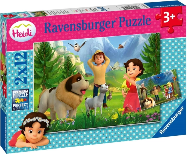 RAVENSBURGER Puzzle Heidi: Spoločný čas na horách 2x12 dielikov