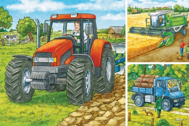Puzzle Poľnohospodárske stroje Ravensburger ponúkajú trojicu obrázkov s motívom poľnohospodárskych strojov, ktoré deti iste nadchnú. Každé puzzle obsahuje 49 dielikov, čo je ideálne množstvo pre mladšie deti: