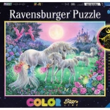 Objavte čaro série COLOR STAR LINE: neónové, fluorescenčné puzzle s motívom jednorožcov pri splne, ktoré sa po nasvietení rozžiaria v tme. Vďaka XXL dielikom sa puzzle pohodlne skladá aj mladším deťom a podporuje sústredenie, logické myslenie a jemnú motoriku.